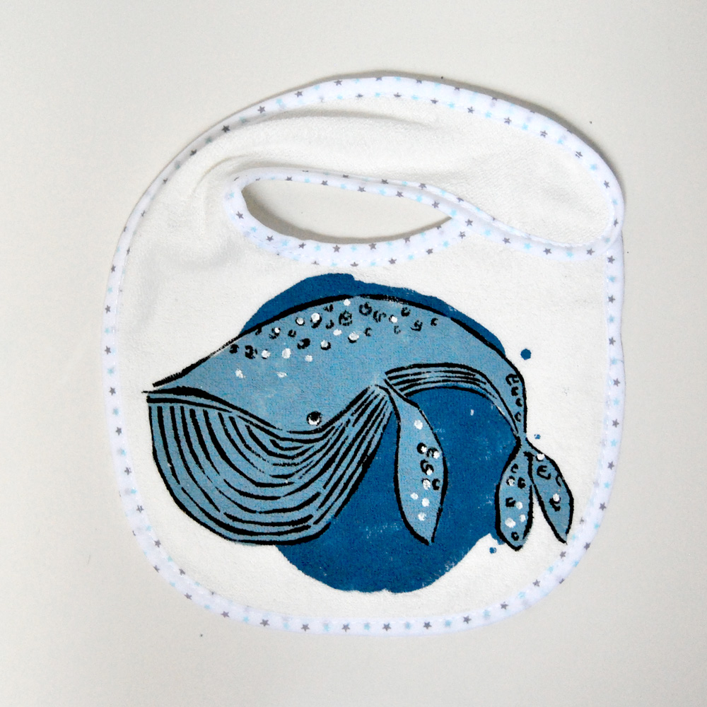Ballena, babero. Serigrafía 4 colores.